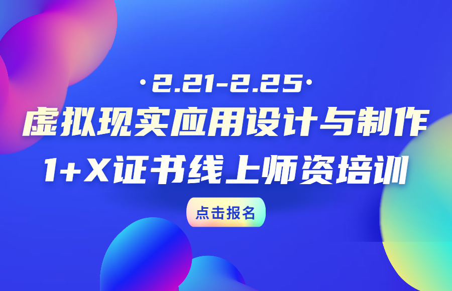 为贯彻落实国家关于新冠肺炎疫情防控工作部署及防疫部门相关通知及要求,切实保障参训老师、工作人员的身体健康和生命安全,经公司研究决定,将虚拟现实应用设计与制作职业技能等级证书第二期师资培训(初、中级)改为线上培训。